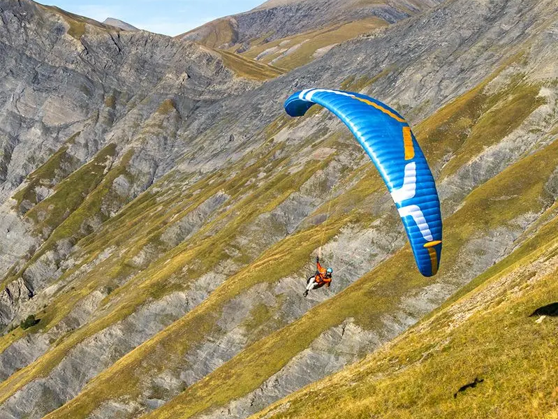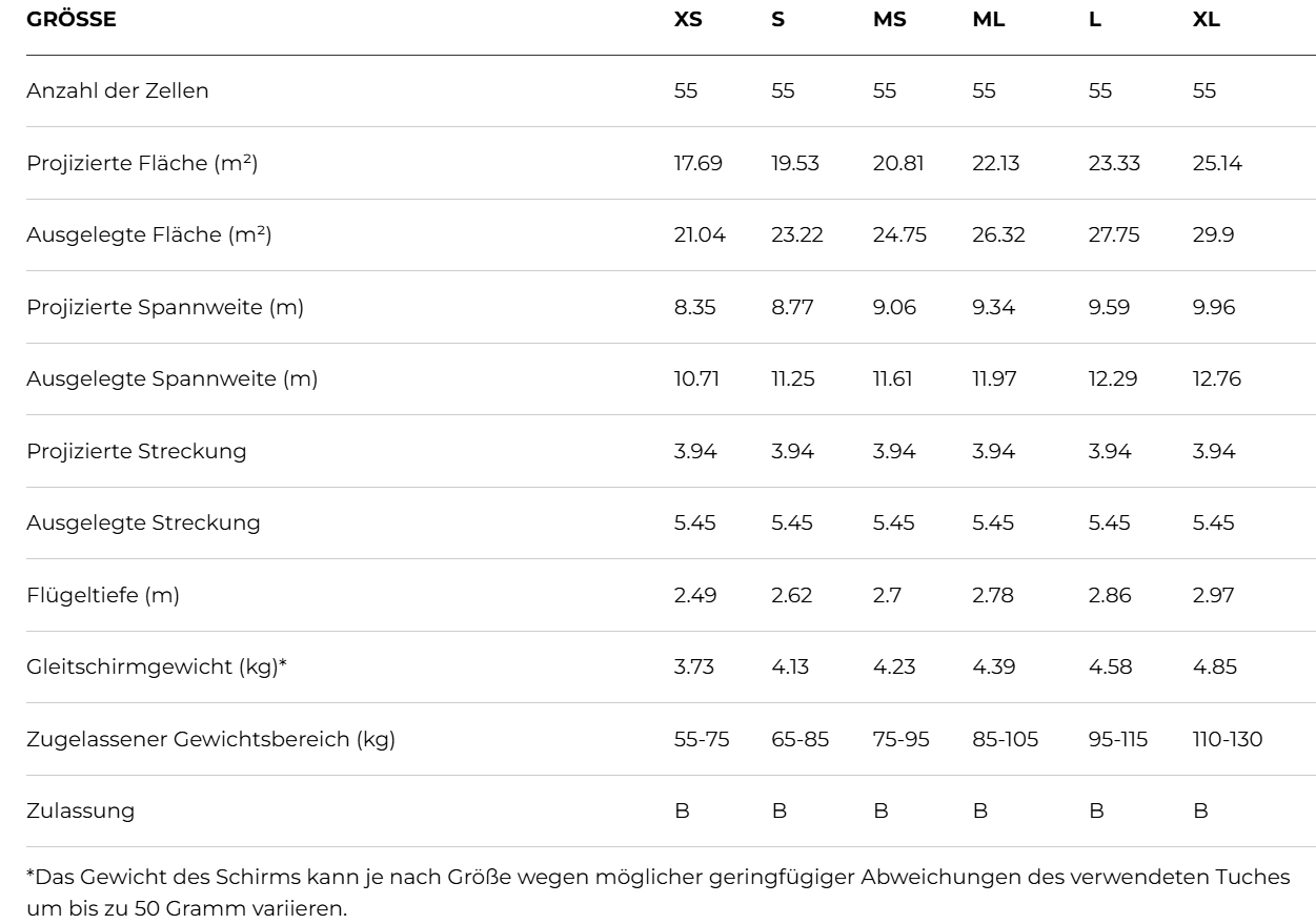 Seine Gleiteffizienz ist über den gesamten Geschwindigkeitsbereich hinweg hervorragend, und das Steuerungssystem an den hinteren Tragegurten bietet mehr Kontrolle und Effizienz im beschleunigten Flug. Der durch eine optimierte Leinenarchitektur verringerte Luftwiderstand, zusätzliche Winglets und eine extrem saubere Hinterkantenkonstruktion schlagen sich in messbaren Verbesserungen bei Gleiteigenschaften und nutzbarer Geschwindigkeit nieder.